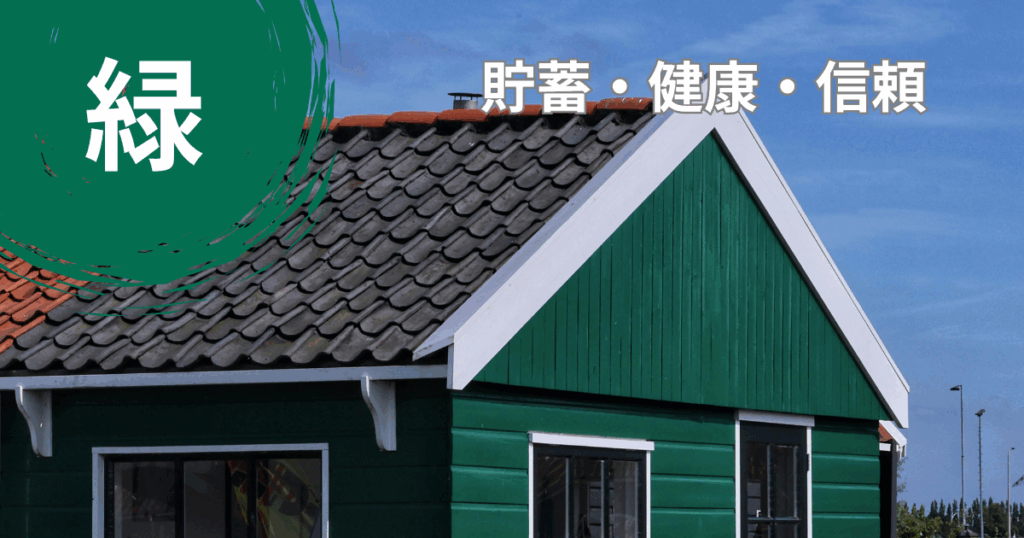 緑は見る人の心を穏やかにするリラックス効果があり、外壁に取り入れることで、家全体に安らぎをもたらしてくれます。家族の健康や心の安定を願う人におすすめの色です。