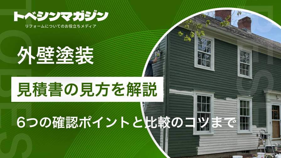 外壁塗装の見積書で必ず確認すべきポイントは、塗料のメーカーと製品名の明記、3回塗りであること、塗装面積や数量の記載、工程ごとの項目分け、適正な足場代、付帯部塗装の項目の6つです。