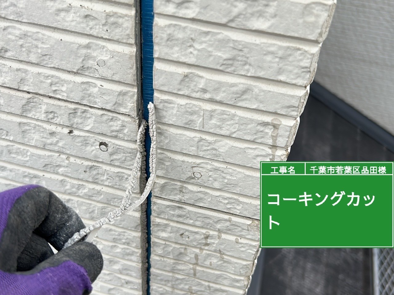 カッターや専用の工具を使って、劣化して硬くなったコーキング材を一本一本丁寧に取り除いていきます。ひび割れや剥がれが見られる古いコーキングを取り除くことで、雨水の侵入を防ぎ、建物の防水性を高めるための重要な工程です。