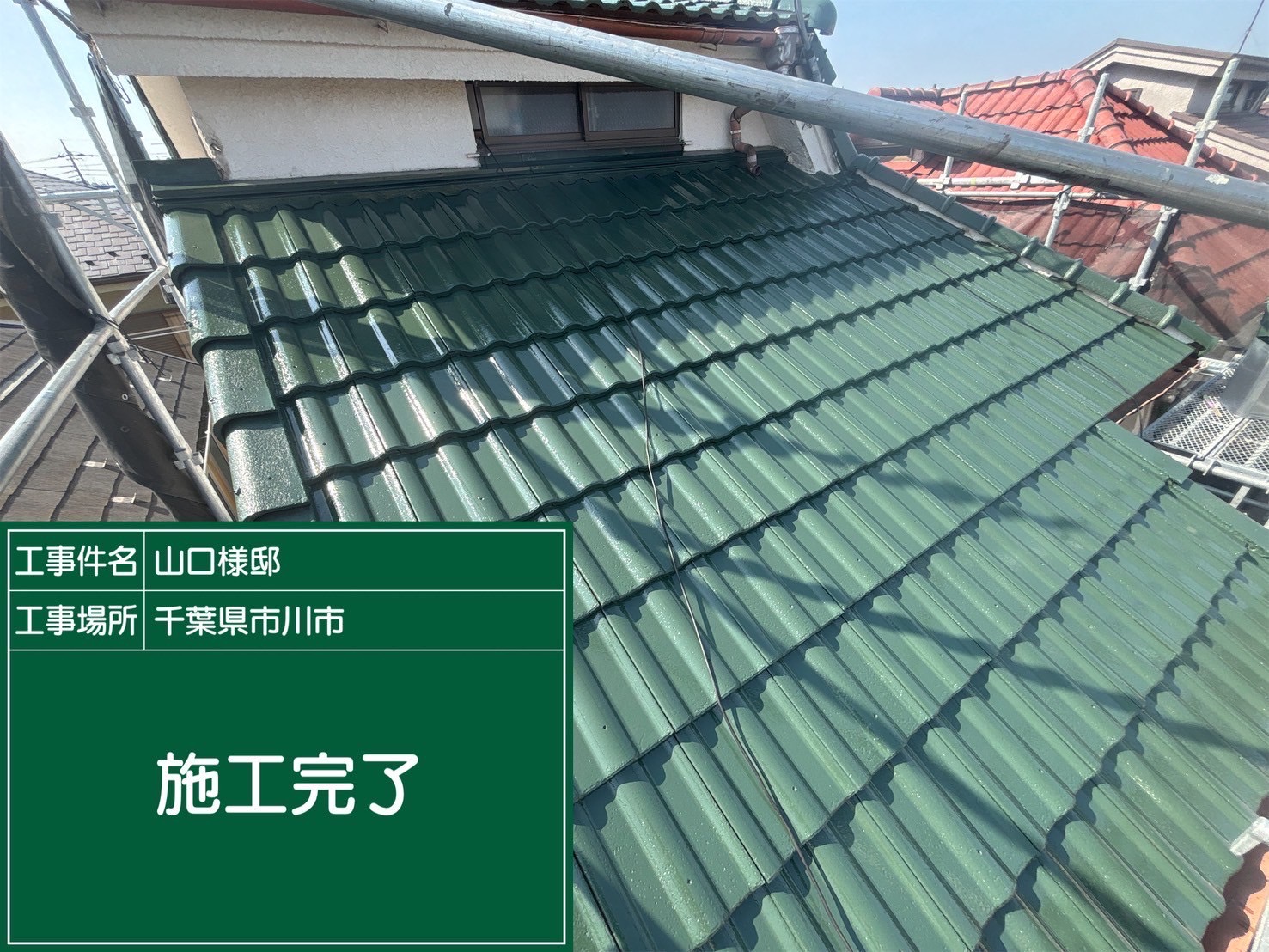 最後に、すべての屋根塗装工事が完了しました。 高圧洗浄から下塗り・中塗り・上塗りまで、丁寧に工程を重ねたことで、美しい仕上がりと高い耐久性を実現しています。 新しく生まれ変わった屋根は、建物全体の印象を引き締めるだけでなく、これから長くお住まいを守ってくれます。