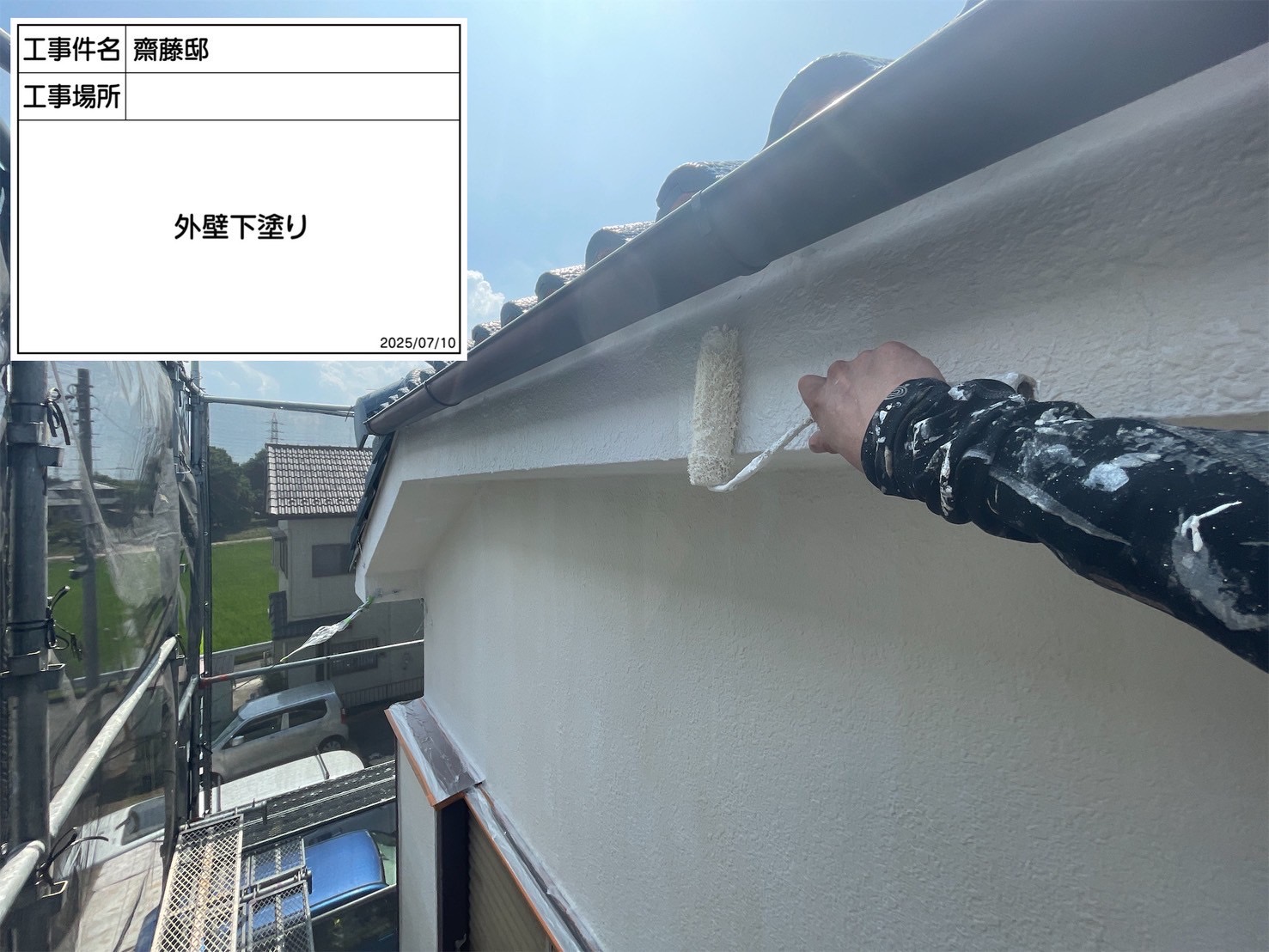 下塗りは、上塗り塗料の密着力を高めるための大切な工程です。専用の下塗り材を、ローラーや刷毛を使ってムラなく丁寧に塗布していきます。