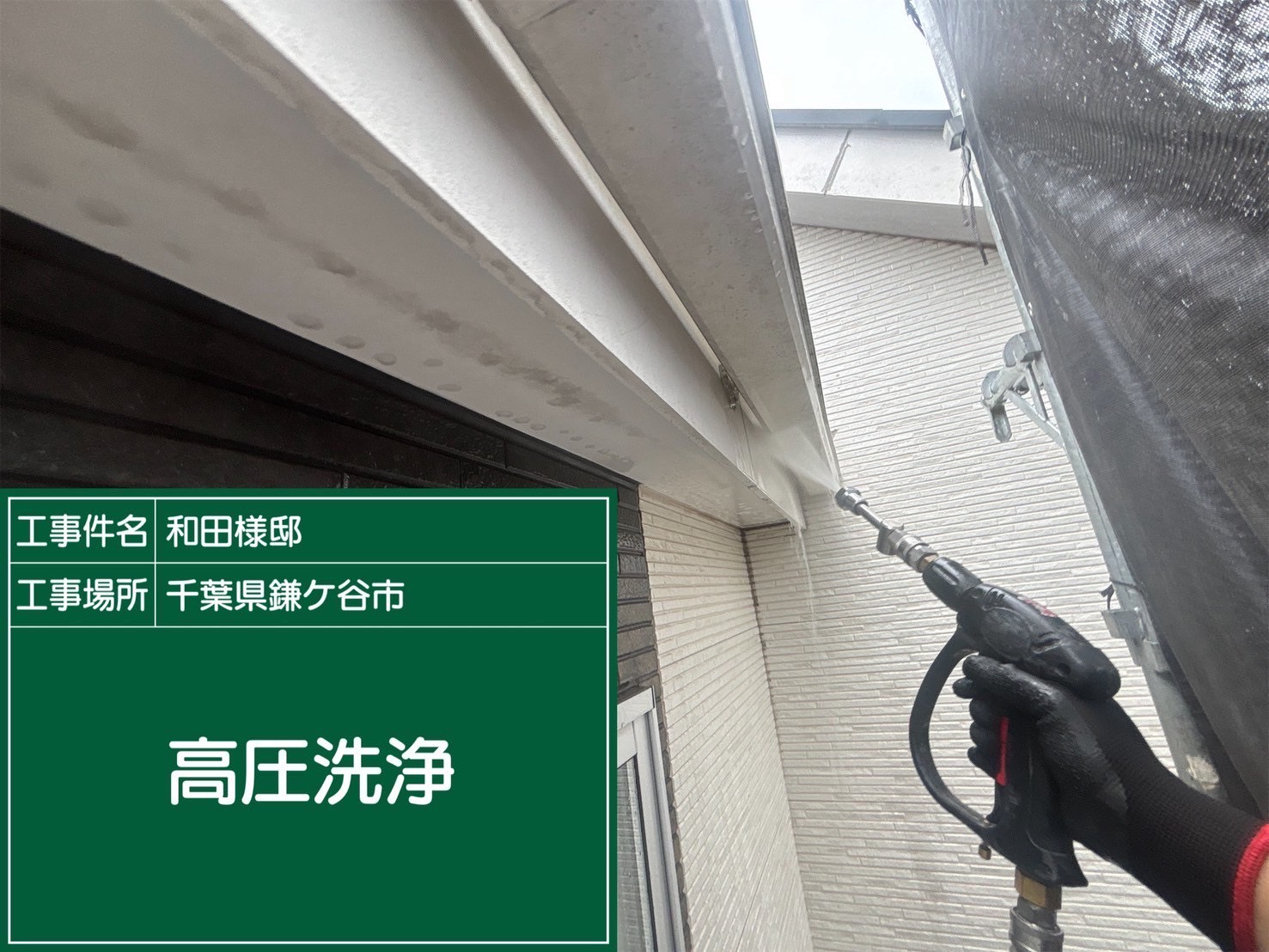 外壁塗装を行う前に、まずは高圧洗浄で外壁の汚れをしっかりと落としていきます。 長年の雨風で付着したホコリや排気ガス、コケやカビなどを高圧の水で丁寧に洗い流すことで、塗料がしっかり密着し、仕上がりの美しさと耐久性が向上します。